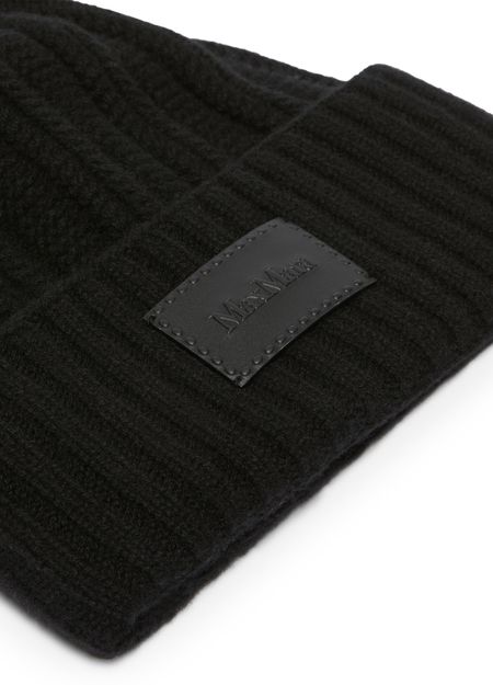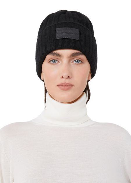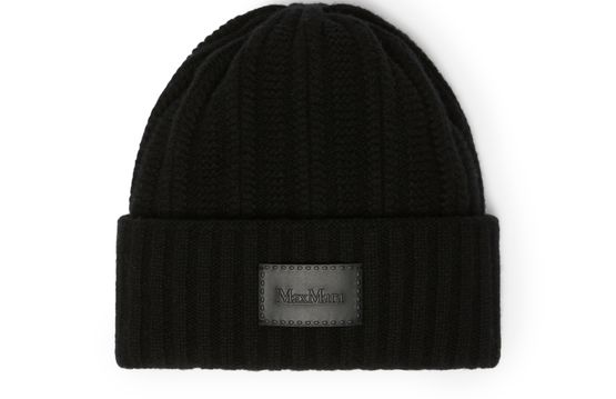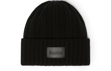 Reveal Max Mara's Macbeth beanie, a stylish accessory with a round crown and turn-up brim. The front logo and visible stitching add a modern touch, making it a versatile choice for any outfit.