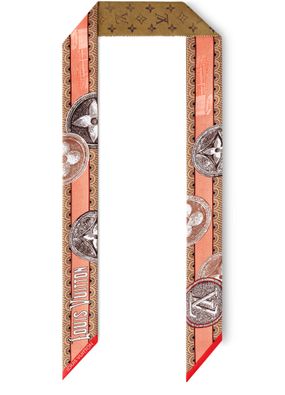 The all-silk Malles Merveilleuses BB bandeau is a celebration of Louis Vuitton’s history and icons. Inspired by a 19th-century advertising poster, its artistic design features vintage trunks and Monogram Flowers, with the classic Monogram pattern on the reverse side for an extra signature. An original way to add a subtle touch of style and color to a winter look.