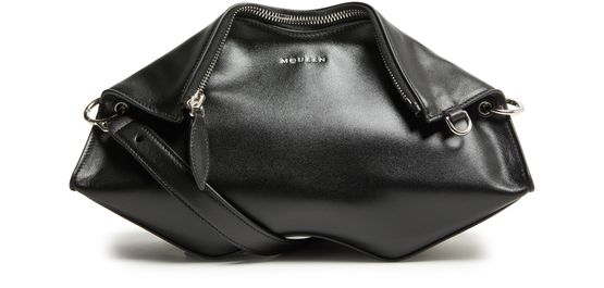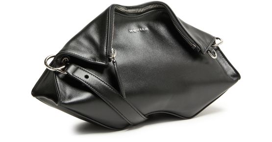 Reveal Alexander McQueen's Manta clutch bag, crafted from smooth leather with a detachable strap for versatile styling. The front logo in silver letters and visible topstitching highlight refined details, while a spacious interior compartment and secure zipper closure ensure both elegance and practicality.