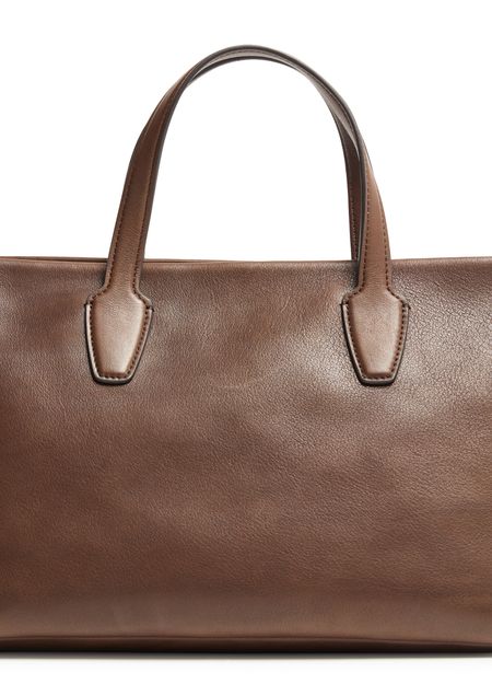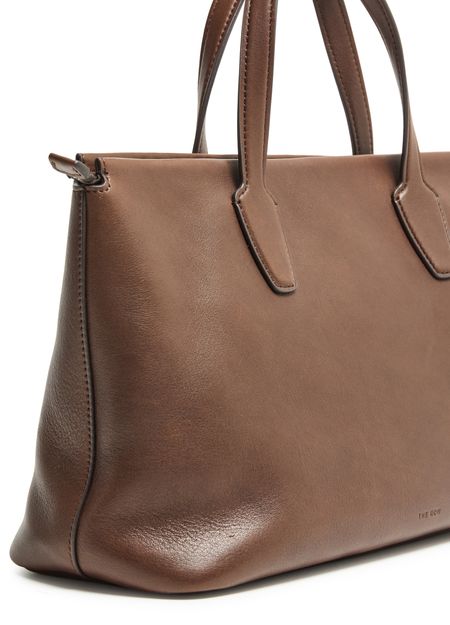 Reveal The Row's Marcel leather tote bag, crafted from grained leather with a padded texture. Double handles and a zipper closure offer both style and security, while visible stitching and a front logo highlight refined craftsmanship. The spacious interior compartment ensures effortless organization for your essentials.