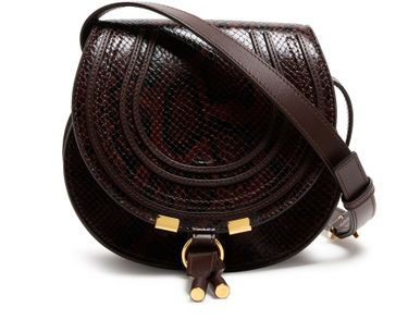 Discover Chloe's Marcie shoulder bag, a sleek accessory adorned with flap closure and visible topstitching. Featuring a front logo and gold finish, it’s perfect for crossbody or shoulder wear. This mini bag's adjustable, thin strap and single handle enhance its versatile style.