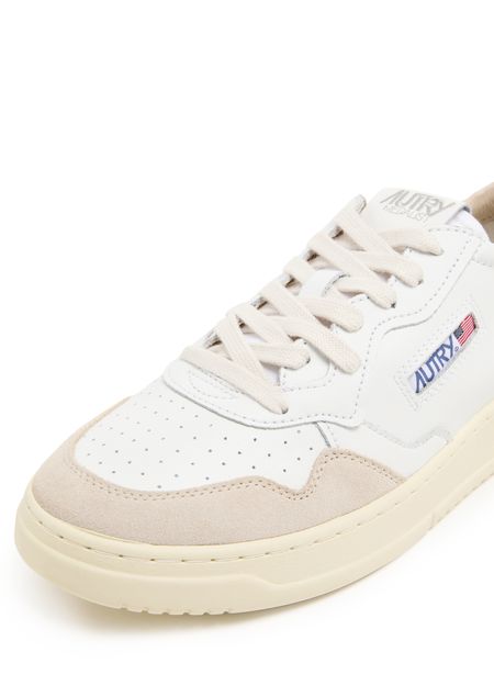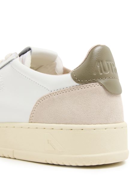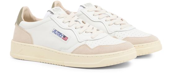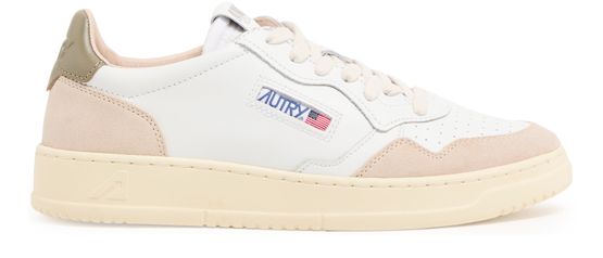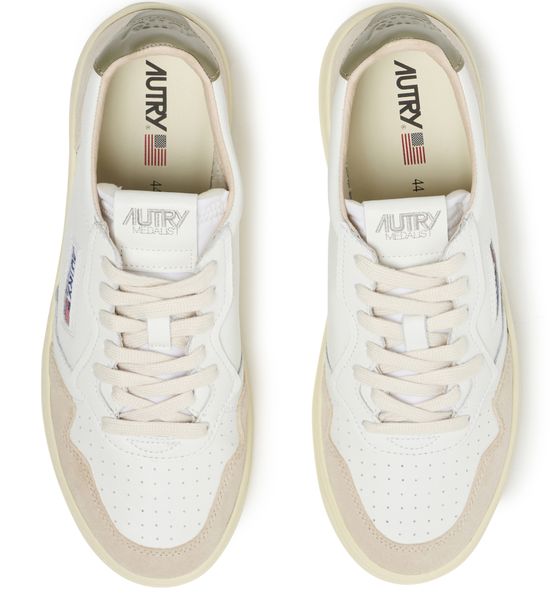 Autry's Medalist low sneakers feature a round toe, closed design, and thick outer sole. They come with a logo-printed insole and a logo at the back. The sneakers also have a logo on the tongue, printed logo, embroidered logo, and logo on the side.
