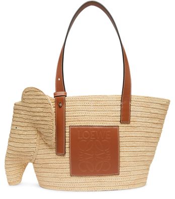 Enhanced by an animal design on the side, this Elephant Basket shopper with two adjustable handles is a Loewe creation. This accessory, with a large interior compartment for carrying your essentials, features a tie closure.