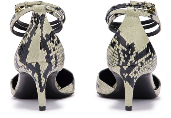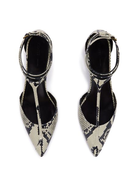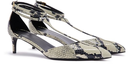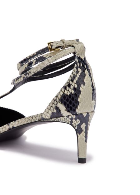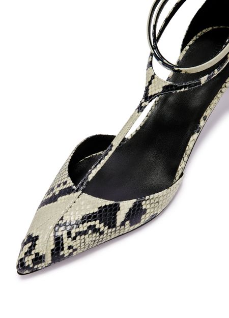 Reveal Khaite's Mia pumps, crafted from snakeskin print leather for a striking finish. The pointed toe and closed design pair elegantly with a medium stiletto heel, offering a refined silhouette. Perfect for elevating any ensemble with a touch of modern sophistication.