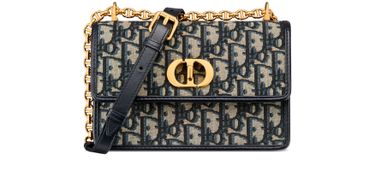 Indulge in Dior's Miss Caro mini bag Dior Oblique jacquard, featuring a CD twist clasp, two main compartments, a zip compartment, three card slots, an exterior slip pocket, and an adjustable chain in leather and gold-finish metal CD links.