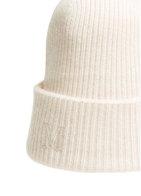 Reveal Max Mara's MM Retina beanie, a stylish accessory with a round crown and turn-up brim. The embroidered logo and visible stitching add a touch of sophistication, making it a versatile choice for any outfit.