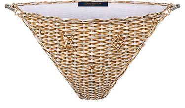 These bikini bottoms have a fresh, summery feel in the LV By the Pool collection’s playful Monogram raffia print. Cut from comfortable swimwear jersey, the contemporary triangle cut is finished with slim sides which are embellished with metallic beads for a chic finishing touch.