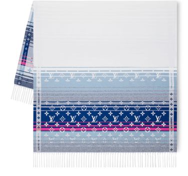 Made for luxurious leisure days by the sea or poolside, the Monogram Sunset Beach Blanket draws inspiration from the hues of a tropical twilight. The colorful striped design in pure, soft cotton features an all-over Monogram pattern and ample fringe finish. Its generous dimensions make this blanket an ideal companion for a sunny summer holiday.