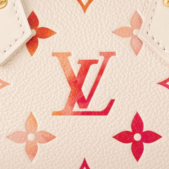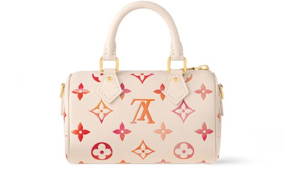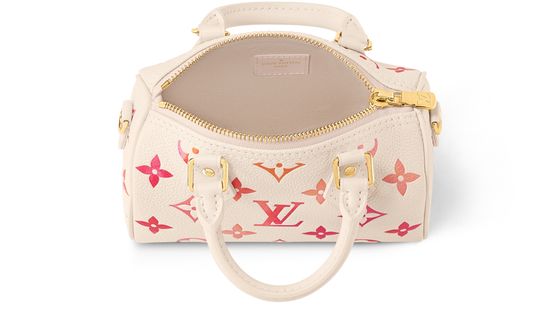 For the Sunrise Aquarelle collection, the Nano Speedy bag is revisited in Monogram Empreinte leather, which is digitally printed with sunrise shades to create a painterly, watercolor effect. This mini replica of the iconic Speedy has two handles and a removable, adjustable shoulder strap, which offer different looks and carry options.