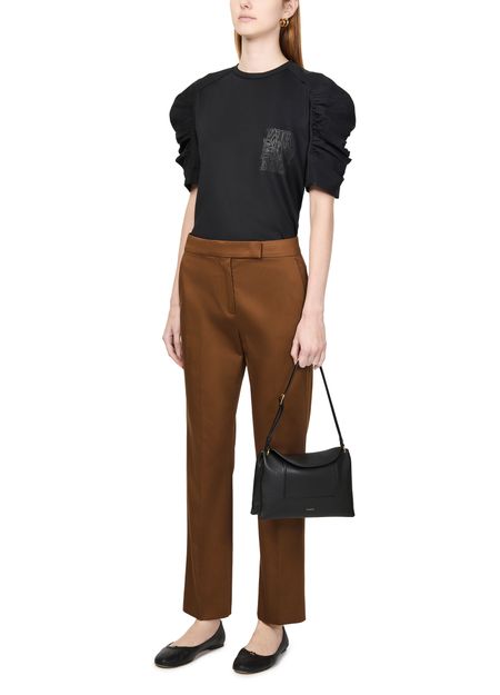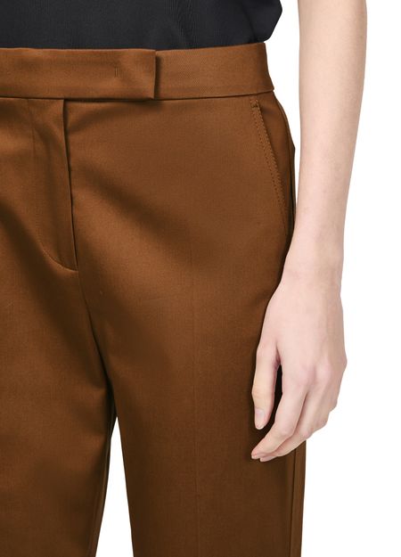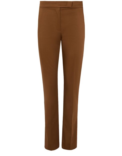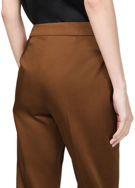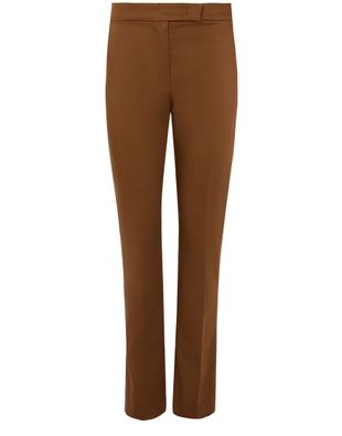 Max Mara's Okra cotton cigarette pants offer a sophisticated low-waisted fit with a straight cut, perfect for formal occasions. The concealed zipper closure and visible stitching enhance their sleek design, while side pockets add practicality. Back darts provide a tailored silhouette, and the ankle length completes this chic wardrobe essential.