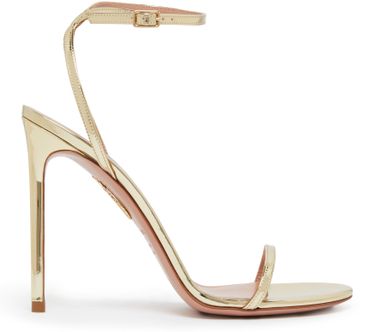 Step into elegance with Aquazzura's Olie sandals 105. These high-heeled stiletto sandals feature a chic ankle strap and a round toe, adorned with an appliquéd logo. The visible stitching adds a touch of sophistication, while the ankle detail elevates your style. Perfect for any occasion, these sandals redefine luxury.