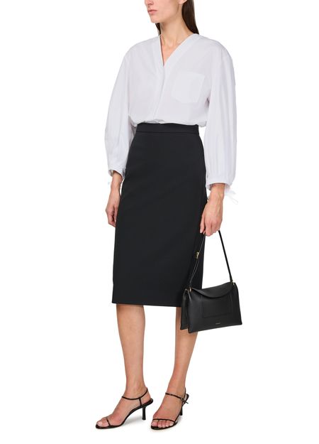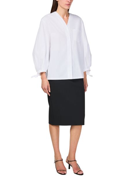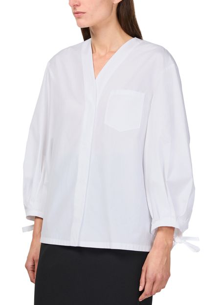 Discover S Max Mara Oro long sleeved shirt, an embodiment of elegance with its V-neck and cuffed sleeves. The loose fit and button fastening offer both style and comfort, while the breast pocket adds a functional touch. Perfect for any occasion, this blouse seamlessly blends classic and modern elements.