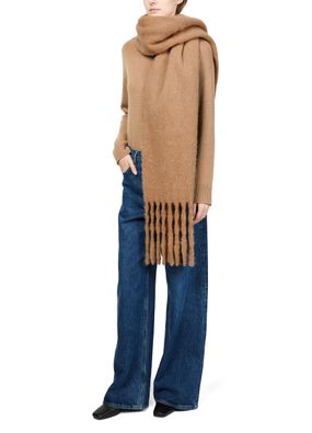 Unveil Max Mara's Osso scarf, a masterpiece of elegance with its fringed edges and embroidered logo. This accessory effortlessly combines style and sophistication, making it a must-have for any wardrobe.