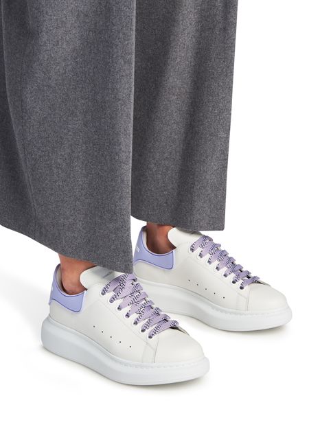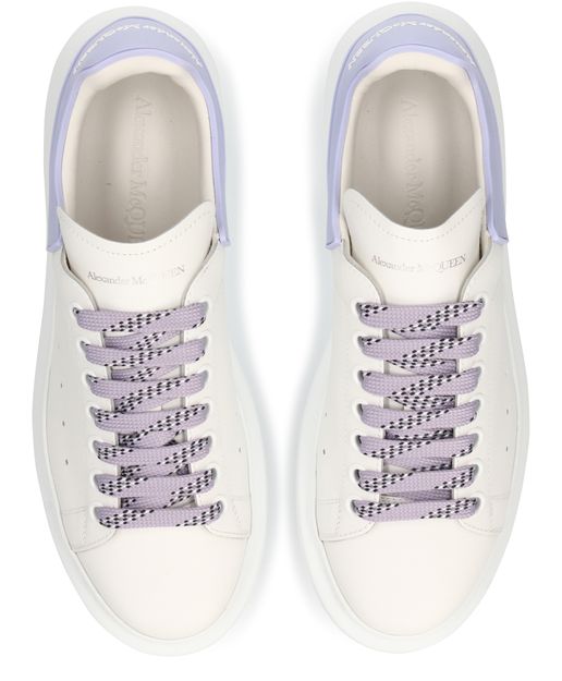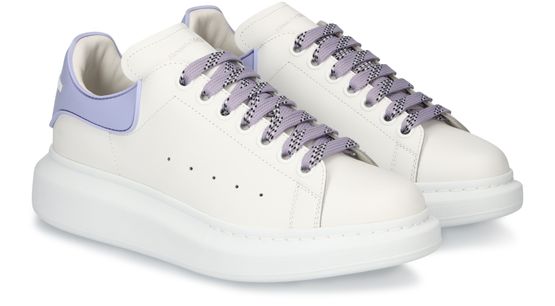 These elegant oversized leather sneakers have a sleek design that plays with contrasting shades of color. The two-tone pattern appears in the lacing and the Alexander McQueen signature on the back.