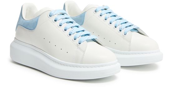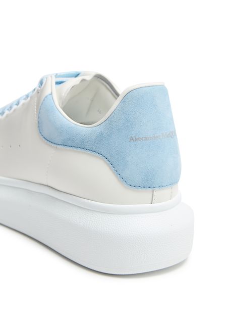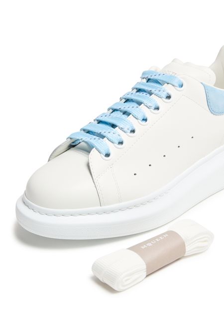 Reveal Alexander McQueen's oversized rubber sneakers, crafted from smooth leather and set on a thick outer sole. The round closed toe and low heel offer comfort, while visible stitching and dual logo accents at the back and tongue add a signature touch. Laces and strap ensure a secure fit.