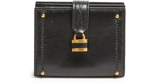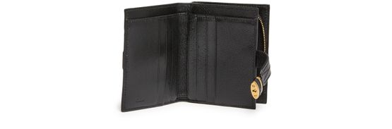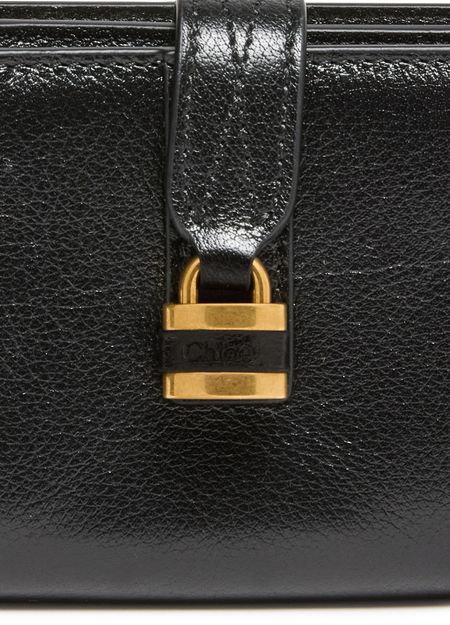 Reveal Chloe's Paddington wallet, crafted from grained leather with a gold clasp and refined gold finish. The engraved front logo and contrast stitching highlight its modern appeal, while zippered and patch interior pockets offer practical organization for your essentials.