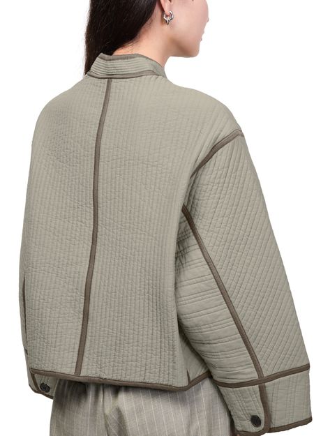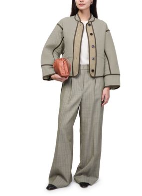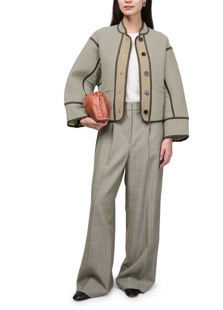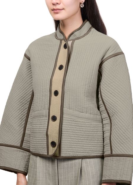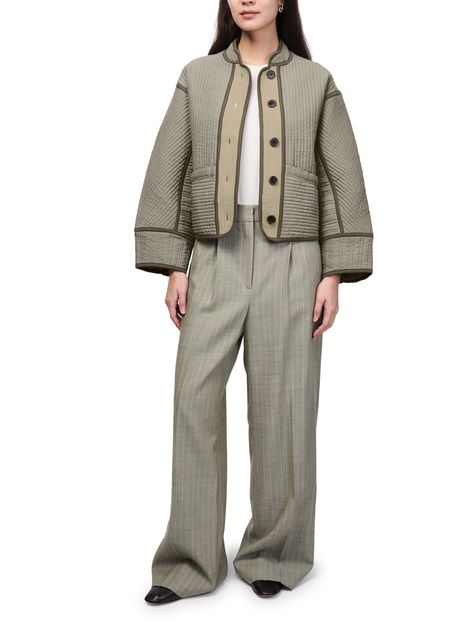 Reveal Soeur's patchouli jacket, a short, collarless silhouette with a front buttoned closure and long sleeves. Two front pockets add practical flair, while the casual design ensures effortless versatility. Perfect for layering, this piece transitions seamlessly from day to night with understated sophistication.