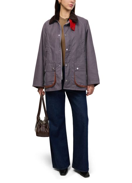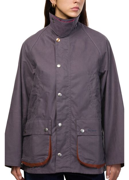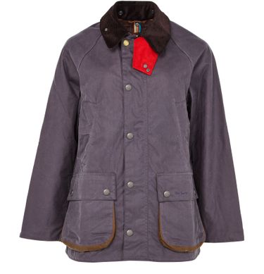 Reveal Barbour's Paul Smith wax jacket, a short, casual jacket with button fastening and long sleeves. Featuring flap pockets and topstitched edges, this lined piece offers both style and practicality. Perfect for versatile wear, it seamlessly transitions from casual outings to more refined occasions.