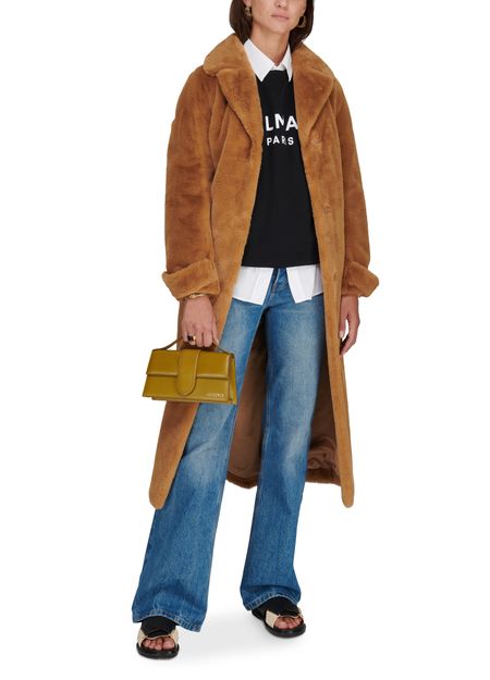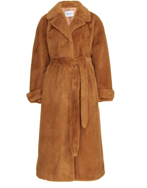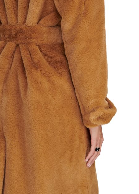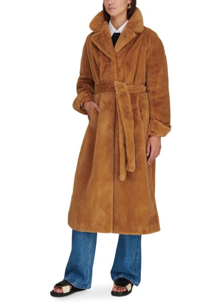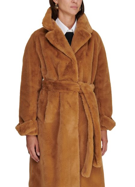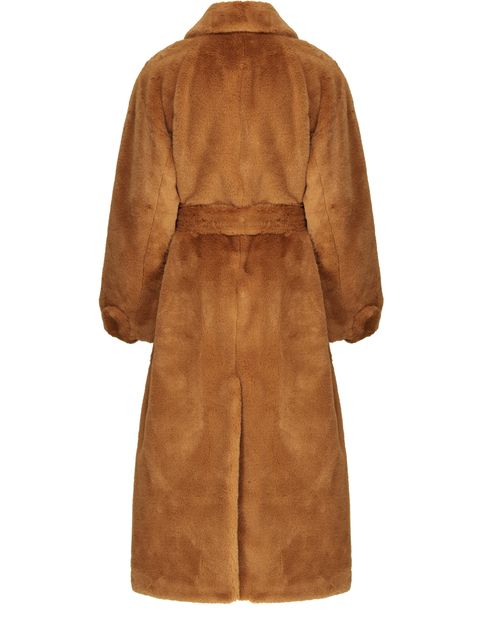 Description : Long coat, soft to the touch, notched collar, detachable belt made from the same material, long sleeves, side pockets, buttoned fastening.