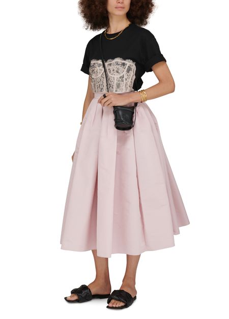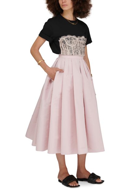 Alexander McQueen's midi skirt features a flattering pleated design, giving it a timeless and elegant look. The midi length and concealed zip fastening at the back add a touch of sophistication to the piece, making it perfect for both formal and casual occasions. A versatile and stylish addition to any wardrobe.