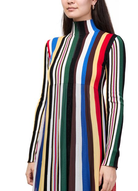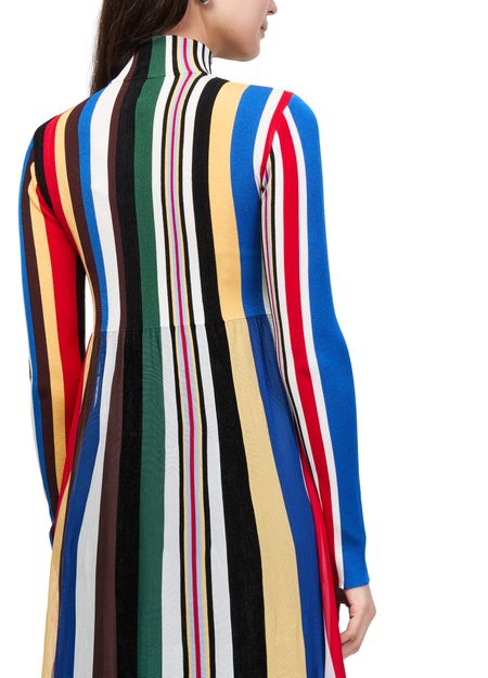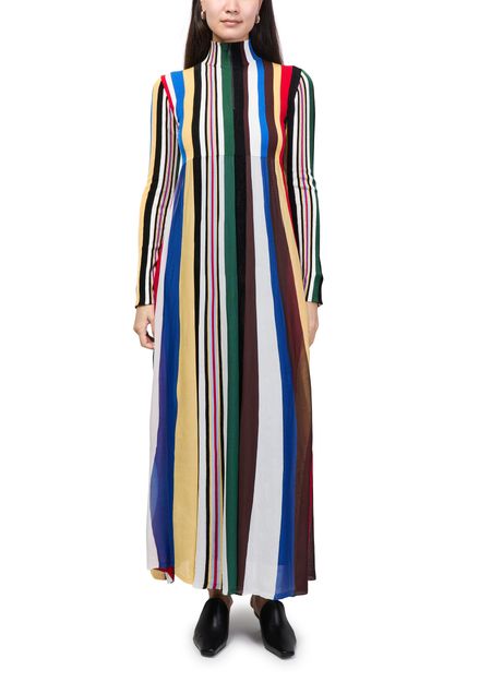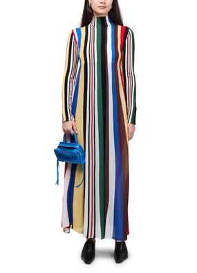 Reveal Loewe's printed maxi dress, a statement piece defined by its striped print and flowing A-line silhouette. The rollneck and cuffed long sleeves add a refined touch, while the maxi length ensures graceful movement. Perfect for elevating your wardrobe with modern sophistication and versatile style.