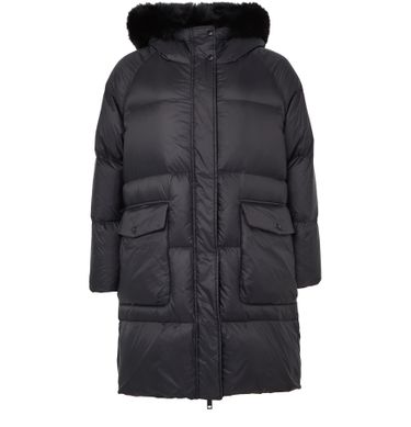 • Description : Long-sleeved, flap pockets, concealed zipper and snap fastening, padded texture, fur detail.