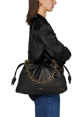 Loewe's Pyjama blouse showcases a refined silhouette with a front buttoned closure and a classic shirt collar. Its long-sleeved design features cuffed sleeves and buttoned cuffs, while patch pockets and a breast pocket add practicality. Visible stitching enhances the regular length, merging comfort with effortless elegance in everyday wear.