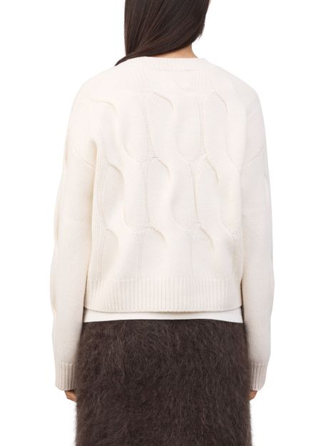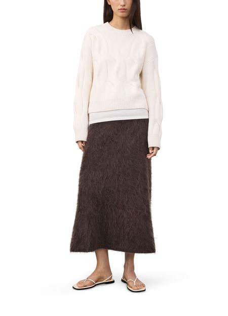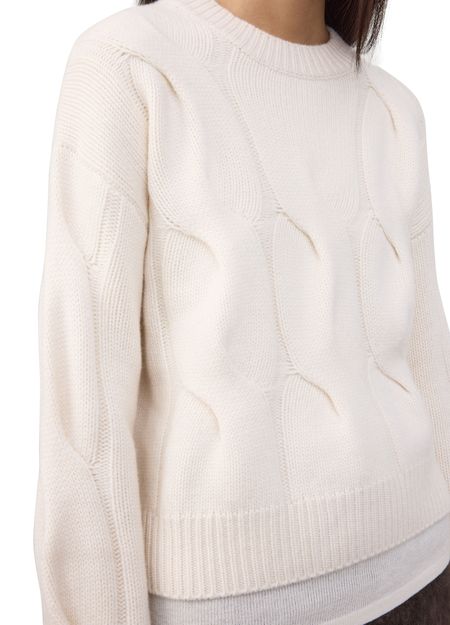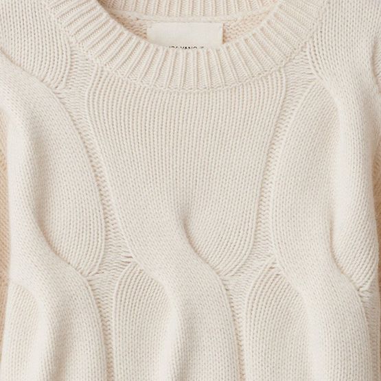 Reveal lisa yang's cropped ribbed knit top, featuring a round neck and dropped long sleeves for a relaxed yet refined silhouette. The textured finish adds dimension, making it a versatile piece that pairs effortlessly with high-waisted trousers or layered under tailored jackets for a modern look.