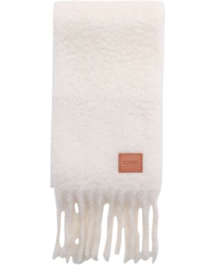Introducing Loewe's scarf in mohair and wool, a perfect blend of warmth and style. Showcasing an embossed logo for a signature touch, this accessory is finished with fringe details that add a playful edge to your ensemble.