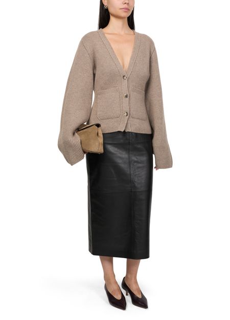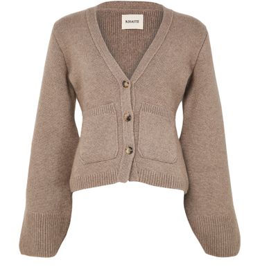 Khaite's Scarlet cardigan exudes effortless style with its long flared sleeves and dropped shoulder silhouette. Crafted from ribbed fabric, it features a timeless V-neck and buttoned fastening. Complete with patch pockets, this oversized shape offers a relaxed, chic look that is perfect for layering in any season.