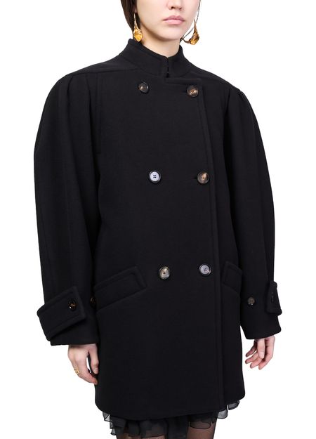 Reveal Chloe's short double-breasted coat, a refined piece with a classic silhouette. Long sleeves and flap pockets add practical elegance, while the double-breasted closure ensures a polished finish. This versatile coat transitions seamlessly from day to night, making it a timeless addition to any modern wardrobe.