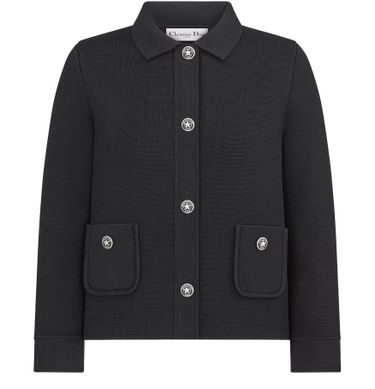Introducing Dior's short jacket, a perfect blend of elegance and modernity. This cropped design features a straight cut, complemented by a chic shirt collar and long sleeves. Enhanced with front patch pockets and a buttoned fastening, this piece is a wardrobe essential.