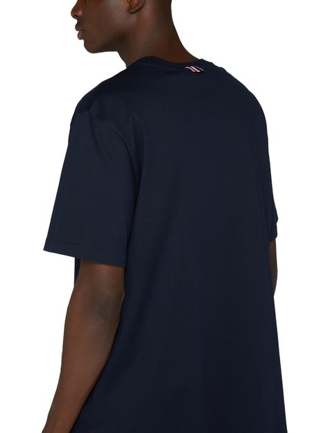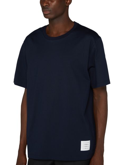 This Thom Browne's short-sleeved t-shirt showcases a round neck and a chic side slit for a modern twist. Crafted from soft cotton, it offers a straight cut for effortless style. The label with logo adds a touch of sophistication, making it a versatile piece for any wardrobe.