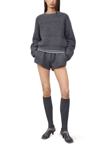 Reveal lisa yang's cropped ribbed knit top, featuring a round neck and long dropped sleeves for a relaxed yet refined silhouette. The textured finish adds dimension, making it a versatile piece that pairs effortlessly with high-waisted trousers or skirts for a modern, elevated look.