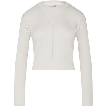 Bottega Veneta's silk sweater is a long-sleeved, straight-cut garment made from very soft and warm fabric. Its luxurious material ensures a comfortable and cozy fit, while its elegant design adds a touch of sophistication to any outfit. A versatile and timeless piece for the modern wardrobe.