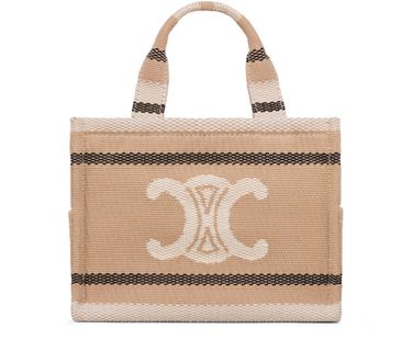 Celine's Small cabas Thais is a stylish companion, expertly crafted in striped textile with a luxurious gold finishing. Designed for versatility, it offers hand carry, shoulder carry, and cross-body carry options. With one main compartment, an inner flat pocket, and two outer flat pockets, it combines elegance and practicality seamlessly.