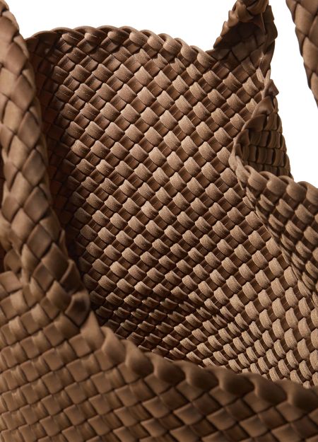 • Description : Shopper / tote bag, shoulder bag, double handles, carry handle, embossed logo, open weave, fabric, padded texture.