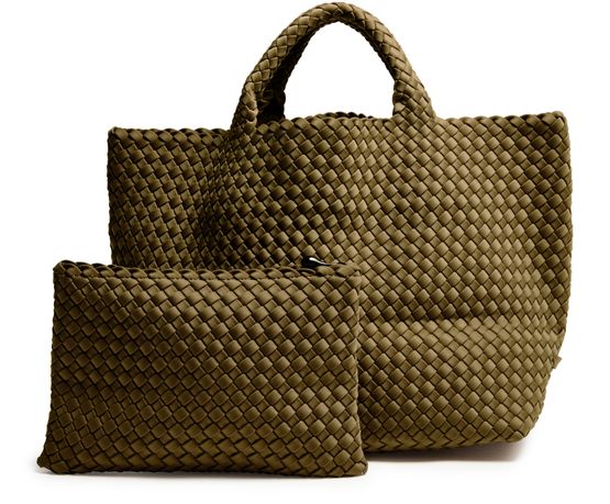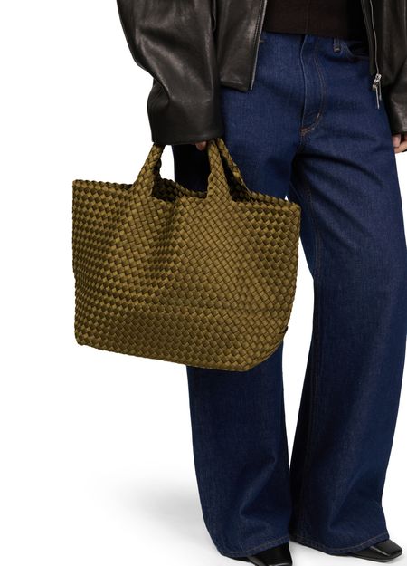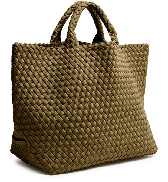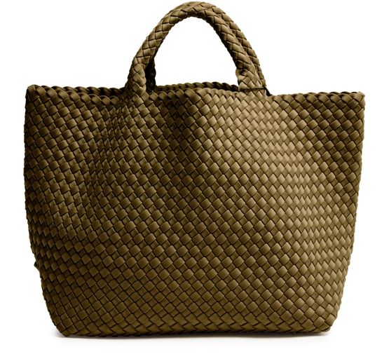 Reveal Naghedi's St Barths medium tote, crafted in open weave for a contemporary look. The double handles offer versatile carrying, while the spacious interior compartment ensures effortless organization. This tote blends modern design with practical elegance, making it a standout accessory for any occasion.