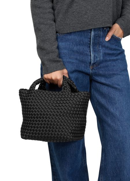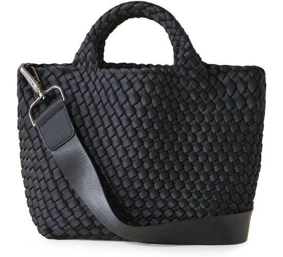 Reveal Naghedi's St Barths small tote bag, a masterpiece of modern design. Crafted with an open weave and featuring double handles, this tote offers both style and functionality. The adjustable, detachable strap and detachable interior purse add versatility, making it a perfect companion for any occasion.