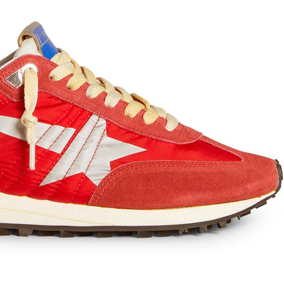 Reveal Golden Goose's super-star running sneakers, designed with a round toe and closed construction for a sleek silhouette. Laces and a strap ensure a secure fit, while visible stitching and contrast details add modern flair. The logo on the side and back delivers signature appeal.