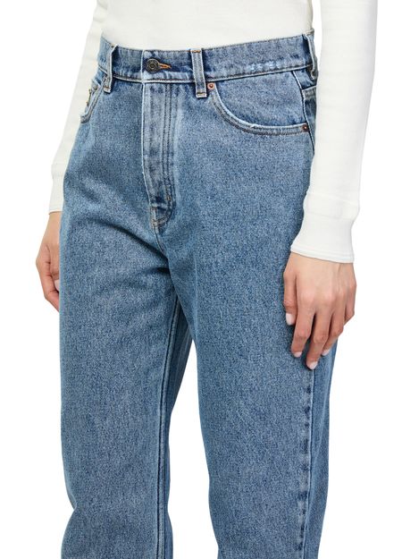 Reveal chloe's straight-cut jeans, crafted from premium denim with a buttoned zipper closure. Ankle length and finished with topstitched edges, these jeans feature belt loops, two front pockets, and a back patch pocket with a leather logo. Visible stitching adds a refined touch for versatile styling.