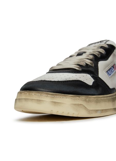 Autry's Super Vintage sneakers are lace-up shoes with a thick outer sole for added comfort and durability. These sneakers feature the brand's logo on the side, adding a touch of style to the classic design. Perfect for everyday wear, these sneakers are a versatile addition to any wardrobe.