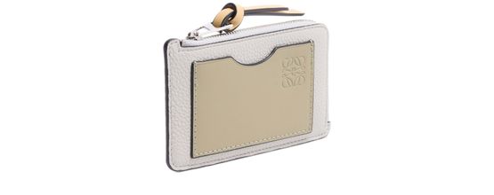 Reveal Loewe's coin cardholder in soft grained calfskin, featuring the iconic Anagram medallion and a refined padded texture. The sleek design includes a secure zipper closure, visible stitching, and interior slots for cards, all finished with an embossed logo for a sophisticated touch.