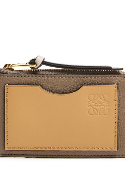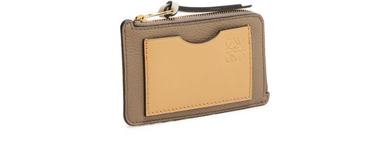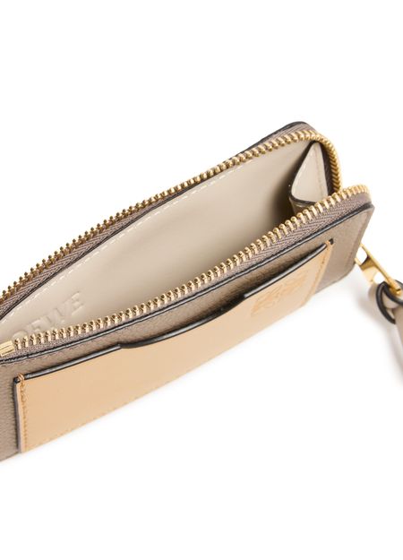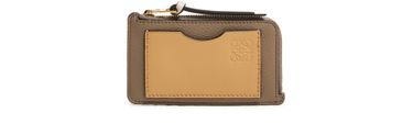 Reveal Loewe's coin cardholder in soft grained calfskin, featuring the iconic Anagram medallion and a refined padded texture. The sleek design includes a secure zipper closure, visible stitching, and interior slots for cards, all finished with an embossed logo for a sophisticated touch.