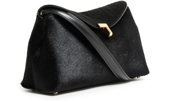 Reveal Toteme's T-Lock pony skin clutch bag, crafted from smooth leather with a refined gold finish. The adjustable, detachable thin strap offers versatile styling, while the logo clasp and spacious interior pocket ensure both elegance and practicality for any occasion.