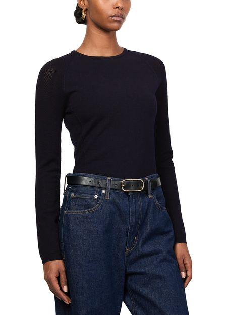 Reveal Max Mara's Tartufo long-sleeved top, a masterpiece in knitwear. This slim fit piece features a bi-material design with ribbed textures, complemented by a round neck and raglan sleeves. Perfect for any occasion, it effortlessly combines style and comfort, making it a versatile wardrobe staple.