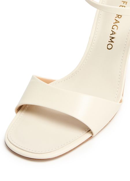 Reveal Salvatore Ferragamo's Teresy 70 sandals, crafted from smooth leather with a striking stiletto heel and open square toe. The buckled ankle strap ensures a secure fit, while gold-finish details and a logo-printed insole add a refined touch to these high-heeled essentials.