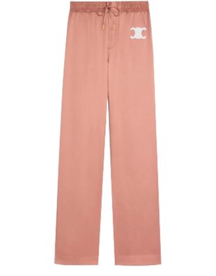 Experience the elegance of Celine Triomphe athletic satin pants, designed with a classic fit and mid-rise silhouette. The contrasting side bands and Triomphe patch elevate your style, while the elasticated waistband with adjustable drawstring ensures comfort. Featuring two side pockets and four Celine-engraved mother-of-pearl buttons, these pants embody Italian craftsmanship.