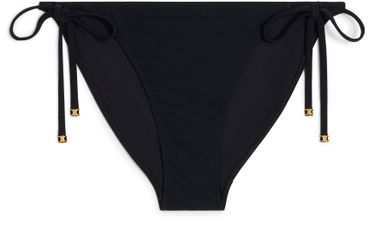 Introducing Celine's Triomphe swimsuit bottom in matte jersey. This classic fit, low-rise piece features elegant tie closures adorned with Triomphe aglets, offering both comfort and style for any beach outing.