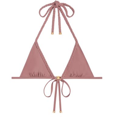 Celine's Triomphe triangle top in matte jersey embodies effortless elegance. Its classic fit flatters the silhouette, while the striking Triomphe gourmette chain adorns the front. Braided tie closures at the neck and back, finished with Triomphe aglets, add a refined touch. Made in France, this piece is a true statement of style.